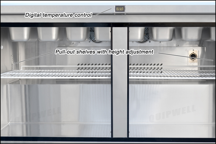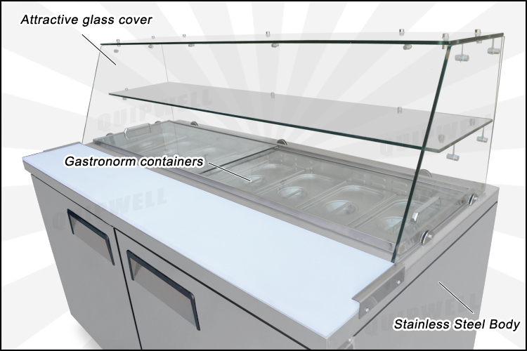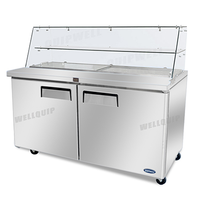 Quipwell Stainless Steel 2 Door Saladette Prep Table Refrigerator/Fridge with large cutting board – 516L Capacity – (Quipwell-SS51G)